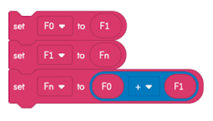 Para calcular el siguiente número de Fibonacci usamos: